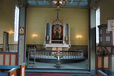 Meland Church (Norwegian: Meland kyrkje) is a parish church of the Church of Norway in Alver Municipality in Vestland county, Norway. It is located in the village of Meland on the island of Holsnøy. It is the church for the Meland parish which is part of the Nordhordland prosti (deanery) in the Diocese of Bjørgvin. The white, wooden church was built in a long church design in 1866 using plans drawn up by the architect Johannes Øvsthus. The church seats about 340 people.[1][2]