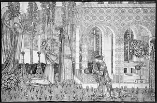 He initially supported himself by producing practical art, such as advertising materials, until 1896, when the Fritz Gurlitt Gallery presented an exhibition of his serious works; including stained glass windows depicting Tristan and Isolde.[2] As a result, the architect, Franz Schwechten, commissioned him to create windows for Saint Simeon's Church and the First Romanesque House. The latter was destroyed during World War II. In 1898, the furniture manufacturer, Jakob Pallenberg, commissioned windows and a mural for the Museum of Applied Arts in Cologne.[3]