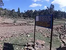 The history of the tabia is strongly confounded with the history of Tembien. As of the 19th Century, both oral traditions and written documents mention that the rulers of Tembien were based in Melfa.[8] Best known is Emperor Yohannes IV, born in Melfa, and whose forefathers had managed to gain power through marriage with all the surrounding ruling families. Kassa (the future emperor Yohannes) controlled the Tembien highlands and later the whole of Tigray; ultimately he crowned himself king of kings of Ethiopia in 1872.[9] However, Emperor Yohannes IV did not establish his capital in Melfa (due to relative inaccessibility), but in Mekelle and Adwa - these towns were well connected to the Red Sea and to inner Ethiopia. Yet, Yohannes kept strong links with Tembien, as indicated by the establishment of a (locally paved) horse-track between Melfa and Mekelle. In 1951, Gebru Gebrehiwot, the new governor, decided to create a new capital of Tembien. First the location of Melfa was chosen. As the inhabitants of Melfa rejected the idea, Hagere Selam was created as a new town.[8] In the 1980s, the area became again a temporary capital in war-faring Ethiopia: the TPLF party established its HQ in a cave in nearby Mahbere Sillasie, whereas the EPDM used a cave in Melfa.