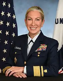 RADM Bert also served as the Director of Governmental and Public Affairs at Coast Guard Headquarters in Washington, D.C.,[17] where she synchronized the service's external engagement with Congress, the media, and strategic partners and stakeholders.[18] In this role, she provided strategic, executive-level advisement for a high-profile communications outreach and public relations program for the Coast Guard.[2][19]