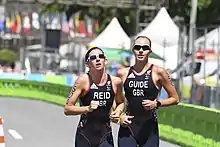 Reid competes with a guide athlete in the PTVI category and was first selected for the British Triathlon Paratriathlon squad in 2012 having finished second at the 2011 ITU World Championship Series in London.[5] Reid won her first national gold at the GBR Paratriathlon National Championships in 2013.[6] She became ITU World Champion in 2013 and won the ETU European Championships in 2013 and 2017. She also competed for ParalympicsGB and won a bronze medal at the Rio de Janeiro Paralympic Games in 2016 in the Women's PT5 class for visually impaired athletes.[7]