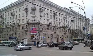 During the Soviet era, the cinema "Kolizey" was located on the ground floor. The poet Sergei Yesenin performed in the cinema hall in the early 1920s. In the 1930s, the building was occupied by the Rostov Azov-Black Sea Committee for Radio Broadcasting and Radiocommunication of the Rostoblispolkom, and the "Udarnik" cinema. There were also shops on the ground floor, and residential apartments on the upper floors.[4]