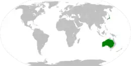 | The range of the Budgerigar Native range: green Introduced range: light green | |