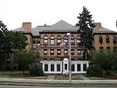 The building on West Emerson Street quickly became too small for the growing community and so at the town meeting held on February 24, 1896, the town allocated $100,000 for the building of a new high school. The town selected a lot of land known as the "Old Burial Ground" on Main Street across from the Central Fire Station as the location for the new school building. On August 1, 1898, an additional $3,000 was appropriated for site work around the building. The school was dedicated on September 17, 1898 and at the time, was one of the "finest school buildings to be found in New England".[4] Two additional wings were added to the main building and opened in 1909.[5]