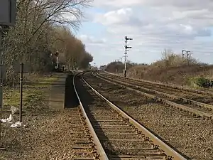 The halt was located at the "Melton Crossing" level crossing.[2] The initial halt was a two platform station with the platforms on the slow lines of the quadruple track at the crossing.[1] The halt opened in October 1920, and was originally named Melton Crossing Halt.[3] It was situated between Brough and Ferriby,[4]
