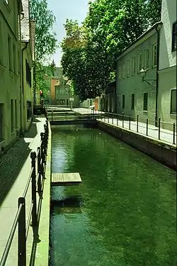 The Memminger Ach is a tributary of the Iller, part of the Danube river system and forms an important part of the landscape in the town of Memmingen. The river is 19.2 km (11.9 mi) long (36.0 km (22.4 mi) including its source river Kressenbach). It flows into the Iller near Pleß.