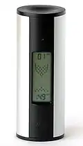 One such product is made of translucent plastic with a heat-sensitive coloured disc in the middle which changes colour at 80 °C (176 °F). The plastic around the disc changes temperature relatively steadily and gradually from the outside to the inside of the plastic mimicking how an egg heats up while cooking. This allows an observer to see the colour creep inwards through the disc and stop the boiling at the stage required. As it mimics the boiling of an egg, it will be accurate even if the boiling process is disrupted, a lower temperature is used and regardless of the quantity of eggs being cooked.[2] Other similar products use electronics to sense the water temperature and play a certain tune or series of beeps to indicate the state of the eggs.[3]