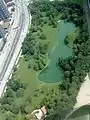 ![]() Memorial Drive outlined in red runs by the Arch Grounds on both sides of I-44 | |
