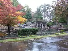 In 1935 Mexican artist Dionicio Rodriguez was hired to beautify the park with sculptures. Annie Laurie's Wishing Chairchairman, Broken Tree Bench, Abrahams Oak, Pool of Hebron and Cave of Machpelah are some of the most important sculptures that can be found in different locations throughout the cemetery.[2]