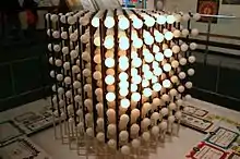 In March, 1961 a new science wing at the California Museum of Science and Industry[1] in Los Angeles opened. The IBM Corporation had been asked by the Museum to make a contribution; IBM in turn asked the famous California designer team of Charles Eames and his wife Ray Eames to come up with a good proposal. The result was that the Eames Office was commissioned by IBM to design an interactive exhibition called Mathematica: A World of Numbers... and Beyond.[2] This was the first of many exhibitions designed by the Eames Office.