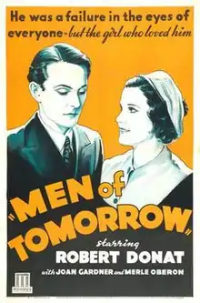Men of Tomorrow is a 1932 British drama film directed by Zoltan Korda and Leontine Sagan, produced by Alexander Korda and written by Anthony Gibbs and Arthur Wimperis. It stars Maurice Braddell, Joan Gardner and Emlyn Williams and features Robert Donat's movie debut.[1][2]