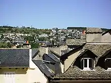 The geology of the city of Mende is very dependent on the surrounding causses and streams that pass through them.[11] The Mont Mimat and the Causse de Changefège are composed of limestone of the "Grands Causses", thus presenting abrupt edges. The other causses (as well as the butte de Fontanille) are composed of limestone of the "Petits Causses" (without these edges). The Lot Valley is composed of marl. The Valdonnez Valley, in the south of Mende, is full of blue marl, leaving one to presuppose that the marl of the town of Mende would be, in part, of the same origin. Finally, the various streams (the Rieucros) of the causses of the north of the city are lined by mica-schist.