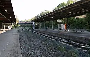 Menden (Sauerland) station is a railway station in the town of Menden (Sauerland) in the German state of North Rhine-Westphalia and is served by the Hönnetal-Bahn. It is located southwest of the town centre on the Hönne. The station was built in 1872.[4]