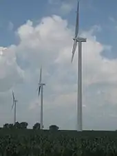 The Mendota Hills Wind Farm is a wind farm in the U.S. state of Illinois near the village of Paw Paw in Lee County. It consists of 63 operating wind turbines. Each wind turbine stands 214 ft (65.23 m) tall and has three 85 ft (35.91 m) long blades. The wind farm was constructed from June 2003 to November 24, 2003. Mendota Hills was the first utility-scale wind farm in the state of Illinois.[1]