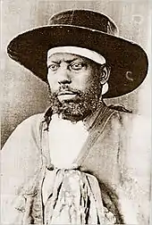 Menelik II is argued to be the founder of modern Ethiopia.[16][17] Before Menelik's colonial conquests,[18] Ethiopia and Adal Sultanate had been devastated by numerous wars, the most recent of which was fought in the 16th century.[19] In the intervening period, military tactics had not changed much. In the 16th century, the Portuguese Bermudes documented depopulation and widespread atrocities against civilians and combatants (including torture, mass killings and large scale slavery) during several successive Gadaa conquests led by Aba Gedas of territories located north of Genale river (Bali, Amhara, Gafat, Damot, Adal.[20][21] Warfare in the region essentially involved acquiring cattle and slaves, winning additional territories, gaining control over trade routes and carrying out ritual requirements or securing trophies to prove masculinity.[22][23][24][25][26] Menelik’s clemency to Ras Mengesha Yohannes, whom he made hereditary Prince of his native Tigray, was ill repaid by a long series of revolts.[13] In 1898, Menelik crushed a rebellion by Ras Mengesha Yohannes (who died in 1906).[13] After this, Menelik directed his efforts to the consolidation of his authority, and to a degree, to the opening up of his country to outside influences.[13] League of Nations in 1935 reported that after the invasion of Menelik's forces into non Abyssinian lands of Somalis, Harari, Oromo, Sidama, Shanqella etc., the inhabitants were enslaved and heavily taxed by the gebbar system leading to depopulation.[27]
