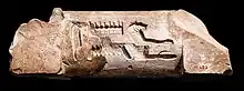 As was common at that time, he also held religious offices: he was a lector priest, and captain of the bat- or khebat-boat,[5][16] an obscure term unattested elsewhere.[17] It most likely refers to the ritual barque of Hathor,[18] akin to the Abydos boats.[19] The term itself (ḫbꜣt or bꜣt) may be a participle of either ḫbꜣ or bꜣ, two verbs meaning "to hack up". Thus, the name of this barque might have been "the hacked up (one)".[20] Other people buried at Dendera had titles referring to the construction and towing of Hathor's barque, which indeed had a crew of oarsmen. Probably this is the same type of ritual barque that is recorded much later to have made a festival journey to Edfu.[20]