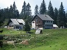 The plateau stands at an elevation between 1,200 and 1,450 meters (3,940 and 4,760 feet) in the Kamnik–Savinja Alps.[2] It is located between the Dreta Valley to the north, the Tuhinj Valley and Motnik Valley to the south, the Črnivec Pass to the west, and the Lipa Pass and Dobrovlje Plateau to the east.[2] The plateau is approximately 20 kilometers (12 mi) from east to west, and approximately 10 kilometers (6.2 mi) from north to south. The highest point on the plateau is Mount Vidovnik (1,508 meters or 4,948 feet),[1][2] where there is also a lookout tower, about a 15-minute walk from the Menina Pasture Lodge (Slovene: Dom na Menini planini; 1,508 meters or 4,948 feet).