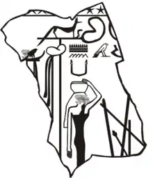 The relief depicts Menka as a standing woman, in a close-fitting dress, with a large, hemispherical vessel on her head and with standards lined up behind her. The hieroglyphs do not indicate who her consort was.[4] Egyptologist Wolfgang Helck noticed that the scene bears considerable stylistic resemblance to an unfinished scene located on a basalt relief at the archaeological site of Gebelein, that is attributed to King Khasekhemwy, who was the last Pharaoh of the Second Dynasty of Egypt. Helck has suggested that the fragment of Menka's relief may also originate from that site.[5]