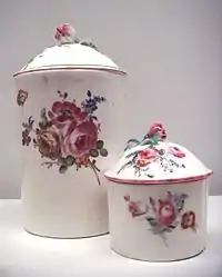 Mennecy-Villeroy porcelain (or Mennecy porcelain) is a French soft-paste porcelain from the manufactory established under the patronage of Louis-François-Anne de Neufville, duc de Villeroy (1695–1766) and — from 1748 — housed in outbuildings ("les petites maisons") in the park of his château de Villeroy, and in the nearby village of Mennecy (Île-de-France).[1] The history of the factory remains somewhat unclear, but it is typically regarded as producing between about 1738 and 1765.[2]