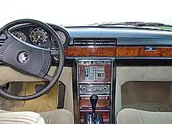 The 450 SEL 6.9 had exclusive wood trim finished in burled walnut veneer on the dash and console instead of striated zebrano veneer as found in other W116 models.