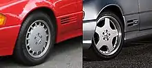 - Sport model SL 320 included AMG staggered tire setup (1997)