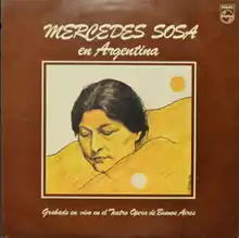 Mercedes Sosa en Argentina is a double album by Argentine singer Mercedes Sosa. It was recorded live at the Teatro Opera de Buenos Aires in February 1982 and released on the Philips label.[1][2] In 2017, it was selected by NPR as one of the "150 Greatest Albums by Women".[3]