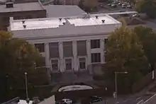 The first floor of the building houses the Human Resources department, the Information Technology department, and a conference room.[8] The second floor is the main entrance of the building and is home to the mayor's office and the Finance and Records department as well as the Public Works department.[8][25] The third floor originally housed an auditorium with a large stage and the Community Development department. The auditorium was rebuilt, though smaller in size than the original, and serves as a public space available to be rented for receptions and as the city council chambers.[8][25] A kitchen for event catering was constructed beside the auditorium, and the floor also contains office space and a conference room.[8]