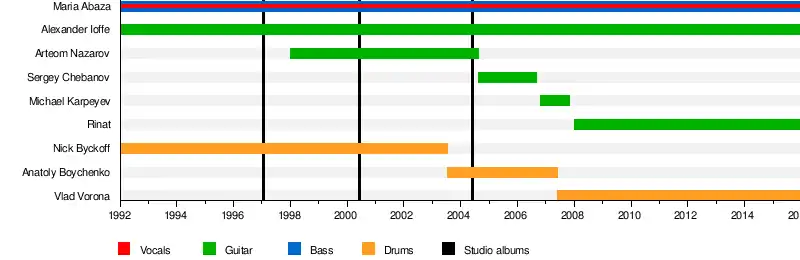 - Mary Abaza — vocals, bass, lyrics (1992–present)