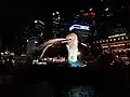 ![]() The Merlion in Merlion Park near the Singapore CBD is a well-known tourist icon of Singapore. The Merlion cub is visible at the bottom right. | |