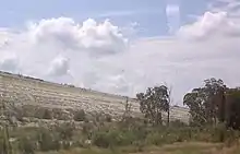 As is typical with gold tailings in South Africa, the Merriespruit tailing dam was constructed using the "upstream semi-dry paddock" method, where a "daywall" perimeter is constructed and allowed to settle and dry out (typically carried out during the day and supervised) before slurry is placed in the "nightpan" (typically carried out at night without supervision). A penstock is ideally located centrally in the dam and drains water (including stormwater).[1]