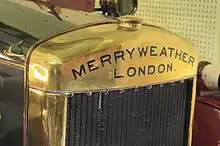 In 1899, Merryweather produced the world's first successful self-propelled steam fire engine, the 'Fire King'; the first was dispatched to Port Louis on Mauritius.[3] The first motorised fire engine in London was a Merryweather appliance delivered to the Finchley Fire Brigade in 1904. It was commemorated in April 1974 by the issue of a 3.5 pence Royal Mail postage stamp. The actual vehicle is preserved in the reserve collection of the Science Museum at Wroughton in Wiltshire. Another notable survivor is the UK's oldest known aerodrome fire/crash tender, a 1937 Merryweather with a Commer engine and chassis, now preserved in running order at Brooklands Museum in Surrey.
