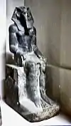 The identity of Mersekhemre Ined with respect to Neferhotep II is still in doubt. Two royal statues of a king named Mersekhemre Neferhotep were uncovered by Georges Legrain in 1903 in the Karnak Cachette and are now in the Egyptian Museum, CG 42023 and CG 42024.[5][6] Additionally, a king Mersekhemre Ined is mentioned in entry 7.6 of the Turin Canon and a king Mersekhemre appears in the Karnak king list, entry VI, 2. Egyptologists Jürgen von Beckerath, Detlef Franke, Jacques Kinnaer, Rolf Krauss and Donald B. Redford conclude that the Mersekhemre Ined of the Turin canon and Mersekhemre Neferhotep are one and the same person.[7] In contrast, Kim Ryholt sees in these documents the references to two distinct rulers with the same official royal name, as for example in the case of Merhotepre Sobekhotep V and Merhotepre Ini. Rather, Ryholt identifies Neferhotep II with a king "Mer...re" on column 8 row 16 of the Turin canon, which would place Neferhotep II at the very end of the 13th Dynasty, possibly the dynasty's 46th ruler.[1] However, this entry of the Turin canon may refer to Mershepsesre Ini II instead, with Neferhotep II being the same king as Mersekhemre Ined.[1]