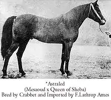 Mesaoud, an Arabian stallion, foaled 1887, was one of the foundation sires of the Crabbet Arabian Stud in England. Bred in Egypt by Ali Pasha Sherif, he was imported to England by Wilfred and Lady Anne Blunt in 1891.[1] He is recognized as an Al Khamsa Arabian, with verifiable lineage tracing to the Bedouin of the desert.[2]