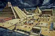 The date of the departure from Aztlán is debated, with suggested dates of 1064, 1111, and 1168.[17] After much wandering, the Mexicas arrived at the basin of the Valley of Mexico in the 14th century. They established themselves at various points along the bank of the river (for example, Culhuacán and Tizapán), before settling on the Islet of Mexico, protected by Tezozómoc, king of the Texpanecas. The city of Tenochtitlan was founded in 1325 as an ally of Azcapotzalco, but less than a century later, in 1430, the Mexicas joined with Texcoco and Tlacopan to wage war against Azcapotzalco and emerged victoriously. This gave birth to the Triple Alliance that replaced the ancient confederation ruled by the Tecpanecas (which included Coatlinchan and Culhuacán).