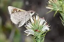 Mesodina cyanophracta, the blue iris-skipper, is a butterfly of the family Hesperiidae. It is endemic to the north-west and south-west coast of the state of Western Australia.
