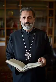 Fr. Mesrop Aramian (Armenian: Տ. Մեսրոպ քահանա Արամյան; born June 20, 1966, in Yerevan, Armenian SSR) is a priest of the Armenian Apostolic Church, theologian, scholar, writer, film producer, social entrepreneur and educator. Author of Ayb School's educational program (Araratian Baccalaureate) and founding chairman of the Board of Trustees.He is a co-founder of the Ayb Educational Foundation.[1] He is a co-founder and member of the Board of Trustees of the Foundation for Armenian Science and Technology (FAST.)[2] Fr. Mesrop Aramian is a member of the AUAC Board of Trustees.[3] Fr. Mesrop Aramian is the chief editor and founding director of "Gandzasar" Theological Center. He is the founder and director of "Vem Media Arts" and "Vem" Radio Station.[4] He is the scriptwriter and producer of the documentary From Ararat to Zion,[5][6] creative producer of the film The Book and the author of its idea.[7][8] Fr. Mesrop has authored an Eastern Armenian translation of The Book of Lamentations by St. Gregory of Narek.[9] He has also authored publications, articles, research studies, radio and TV shows, as well as educational projects and programs.
