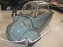 The Messerschmitt KR175 microcar (1953–1955) was the first vehicle built by Messerschmitt under its 1952 agreement with Fritz Fend. In concept, although not in actual design, it was, in principle, a development of the Fend Flitzer invalid carriage. Approximately 15,000 were built before it was replaced by the Messerschmitt KR200 in 1956.[4]