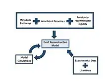 A metabolic reconstruction provides a highly mathematical, structured platform on which to understand the systems biology of metabolic pathways within an organism.[2] The integration of biochemical metabolic pathways with rapidly available, annotated genome sequences has developed what are called genome-scale metabolic models. Simply put, these models correlate metabolic genes with metabolic pathways. In general, the more information about physiology, biochemistry and genetics is available for the target organism, the better the predictive capacity of the reconstructed models. Mechanically speaking, the process of reconstructing prokaryotic and eukaryotic metabolic networks is essentially the same. Having said this, eukaryote reconstructions are typically more challenging because of the size of genomes, coverage of knowledge, and the multitude of cellular compartments.[2] The first genome-scale metabolic model was generated in 1995 for Haemophilus influenzae.[3] The first multicellular organism, C. elegans, was reconstructed in 1998.[4] Since then, many reconstructions have been formed. For a list of reconstructions that have been converted into a model and experimentally validated, see http://sbrg.ucsd.edu/InSilicoOrganisms/OtherOrganisms.