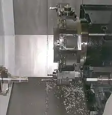 Turret lathes and capstan lathes are members of a class of lathes that are used for repetitive production of duplicate parts (which by the nature of their cutting process are usually interchangeable). It evolved from earlier lathes with the addition of the turret, which is an indexable tool holder that allows multiple cutting operations to be performed, each with a different cutting tool, in easy, rapid succession, with no need for the operator to perform setup tasks in between (such as installing or uninstalling tools) nor to control the toolpath. (The latter is due to the toolpath being controlled by the machine, either in jig-like fashion via the mechanical limits placed on it by the turret's slide and stops, or via computer-directed servo mechanisms on CNC lathes.)[5]