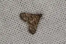 The wingspan is about 15 mm. The wings are pale brown with a pattern of dark brown zigzag lines.[2]