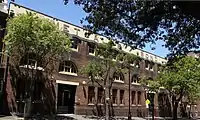 The building stands upon the site of the former garden and orchard for Robert Campbell's Wharf House (1800-1883),[2] itself on a grant made to Campbell on 29 June 1814.[3] Part of it was later used as a quarry. The existing stone retaining wall at George Street probably dates from the mid to late 19th century.[2][1] For much of the 19th century the site was apparently used as Campbell's garden and was acquired by the Colonial Government in 1887 and then used as a stone quarry.[1][2][3] In 1900 the site was vested in the NSW Government as part of the Darling Harbour Resumptions, following the outbreak of bubonic plague.[4][1]