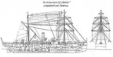 After the war the uncompleted hull was tugged to Wilhelmshaven for outfitting work at the Reichsmarinewerft. She was outfitted as a survey vessel and early sonar equipment was fitted. The ship had a steel hull with two propellers each driven by a triple-expansion steam engine. Additionally she had a brigantine rig to boost range.[2]