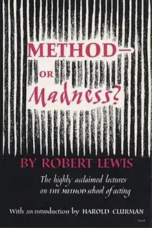 Method — Or Madness? was the title of a series of lectures given by Actors Studio founder Robert Lewis in New York in 1957, and later published as a book of the same title.[1]