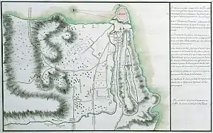 Its entrance is accessed by a stone bridge of 14 arches, that was built over a moat by the technicians of the Expédition scientifique de Morée, that accompanied general Maison. The entrance gate ends in an arch framed on the right and left by pilasters with Corinthian capitals. It is considered to be the work of Venetians after 1700. On the right and left of the entrance two large battlements can be seen. One battlement is the one built by general Antonio Loredan, during the second period of Venetian occupation.