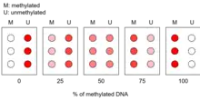 Cancer cells often develop atypical methylation patterns, at CpG sites in promoters of tumour suppressor genes. High levels of methylation at a promoter leads to downregulation of the corresponding genes and is characteristic of carcinogenesis. It is one of the most consistent changes observed in early stage tumour cells.[1] Methylation specific oligonucleotide microarray allows for the high resolution and high throughput detection of numerous methylation events on multiple gene promoters. Therefore, this technique can be used to detect aberrant methylation in tumour suppressor promoters at an early stage and has been used in gastric and colon cancers and multiple others.[4][5] Because it allows one to detect presence of atypical methylations in cancer cells, it can also be used to reveal the major cause behind the malignancy, whether its main contributor is mutations on chromosomes or epigenetic modifications, as well as which tumour suppressor genes' transcription levels are affected.[2][6] An interesting use of this microarray includes specific classification of cancers based on the methylation patterns alone, such as differentiating between classes of leukemia, suggesting that different classes of cancer show relatively unique methylation patterns.[7] This technique has also been proposed to monitor cancer treatments that involve modifying the methylation patterns in mutant cancer cells.[2]