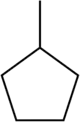 Methylcyclopentane is an organic compound with the chemical formula CH3C5H9. It is a colourless, flammable liquid with a faint odor. It is a component of the naphthene fraction of petroleum. It usually is obtained as a mixture with cyclohexane. It is mainly converted in naphthene reformers to benzene.[2] The C6 core of methylcyclopentane is not perfectly planar and can pucker to alleviate stress in its structure.[3]