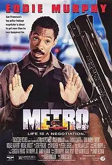 Metro is a 1997 American action comedy film starring Eddie Murphy, Michael Rapaport, Michael Wincott, and Art Evans. It is directed by Thomas Carter, and produced by Roger Birnbaum. The plot follows Scott Roper (Murphy), a hostage negotiator and inspector for the San Francisco Police Department who seeks revenge against a psychotic jewel thief, Michael Korda (Wincott), who murdered Roper's best friend, Lt. Sam Baffert (Evans). Metro was released on January 17, 1997, in the United States, where it grossed $32 million.