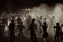 In 1992 the musical opened on Broadway at the Minskoff Theatre, but soon closed due to unfavorable reviews. In 1997, the musical moved to Studio Buffo theatre in Warsaw, where it is still running in simplified arrangement after more than 2,100 performances in total. According to estimates, it was watched by approx. 2 million viewers.[3][4][5]