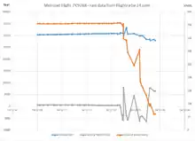 The Islamic State's Sinai branch said in a statement the same day that it had brought down the airliner. Wassim Nasr, France 24's expert on jihadi movements, said that the IS group has never claimed an attack they did not commit.[14] Russian media outlets claimed that the pilot reported technical problems and had requested a landing at the nearest airport before the A321 went missing. This claim was disputed by other sources, including the Egyptian authorities, and subsequent analysis of the flight recorder data confirmed that this was false.[37][38] The Egyptian Civilian Aviation Ministry issued a statement that indicated the flight was at an altitude of 31,000 ft (9,400 m) when it disappeared from radar screens after a steep descent of 5,000 ft (1,500 m) in one minute. Flightradar24 shows the aircraft climbing to 33,500 ft (10,200 m) at 404 kn (748 km/h; 465 mph) before suddenly descending to 28,375 ft (8,649 m) at 62 kn (115 km/h; 71 mph) approximately 50 km (31 mi; 27 nmi) north east of Nekhel, after which its position was no longer tracked.[39] A bomb exploded in the aircraft, causing uncontrolled decompression, and the aircraft disintegrated in mid-air.[40] All 224 passengers and crew died.[38]