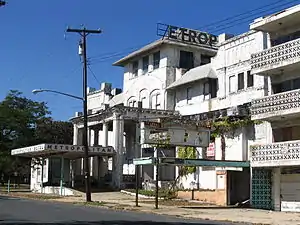 The most recent structure was not the original, although a hotel had operated on the site under this name since the 1880s. The main structure was a Spanish Revival style built in a rectangle, with a four-story hip roof, central pavilion, two-story porticos with fluted Doric columns, and balustrade and enclosed porches. Decorative touches included the stucco surfacing, parapet roof and canales. The metal marquee was a later addition, and there was a newer motel wing on the east side of the property.[2] The motel annex was razed in early December 2009.